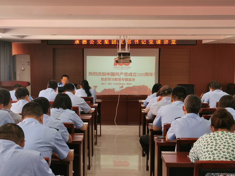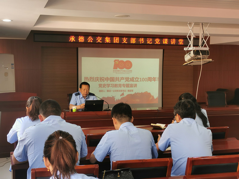 6月11日上午,公交集团党委组织举办了2021年第三期“支部书记党课讲堂”,客运一公司党支部书记陈亚军利用“党课讲堂”平台,以“中国共产党百年历程与中华民族伟大复兴”为主题向全体参课党员进行了专题宣讲,总体介绍了中国共产党成立到领导中国人民实现从站起来、富起来到强起来的伟大飞跃,以及取得举世瞩目的伟大成就,引导和教育全体党员要“听党话、感党恩、跟党走”,不断从党的奋斗历史中汲取前进力量,努力推动集团高质量发展,为奋力谱写承德公交发展新篇章贡献最大力量。