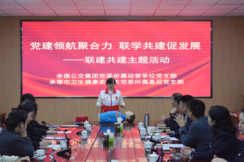 为深入学习贯彻习近平新时代中国特色社会主义思想和党的二十届三中全会精神,扎实贯彻落实新时代党的建设总要求,按照市国资委党委“搭建共建平台、结对开展活动”广泛开展党建共建联建活动要求,2024年11月15日,承德公交集团党委所属运营单位党支部与承德市卫生健康委机关党委所属基层党支部联合开展了“党建领航聚合力 联学共建促发展”党建联建共建主题活动。承德公交集团党委副书记、工会主席丁智勇,承德市卫生健康委机关党委副书记、四级调研员王思诺以及双方基层党支部书记、党员代表,红十字会讲师等50余人参加活动。此次活动由承德公交集团党委办公室副主任陈稷主持。