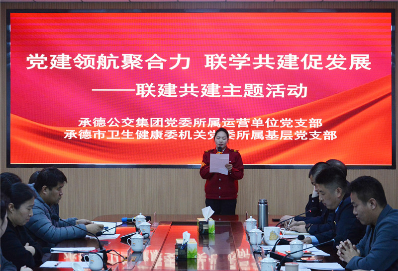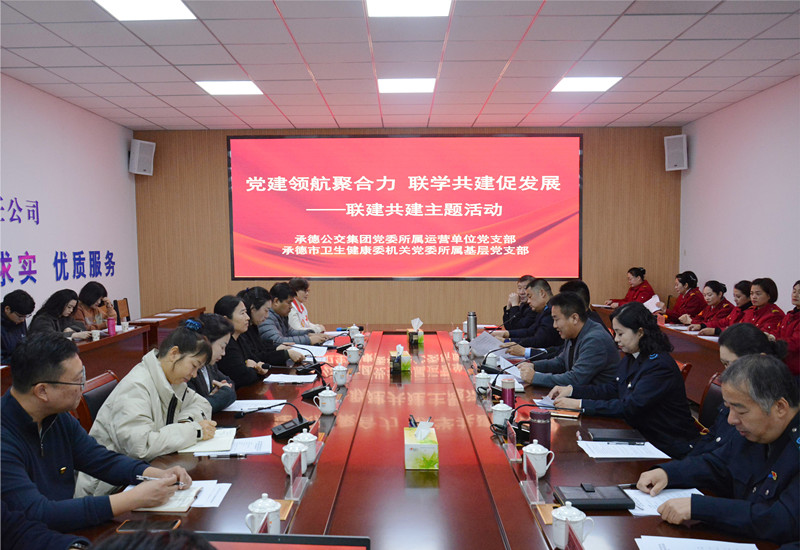 【概要描述】为深入学习贯彻习近平新时代中国特色社会主义思想和党的二十届三中全会精神,扎实贯彻落实新时代党的建设总要求,按照市国资委党委“搭建共建平台、结对开展活动”广泛开展党建共建联建活动要求,2024年11月15日,承德公交集团党委所属运营单位党支部与承德市卫生健康委机关党委所属基层党支部联合开展了“党建领航聚合力 联学共建促发展”党建联建共建主题活动。